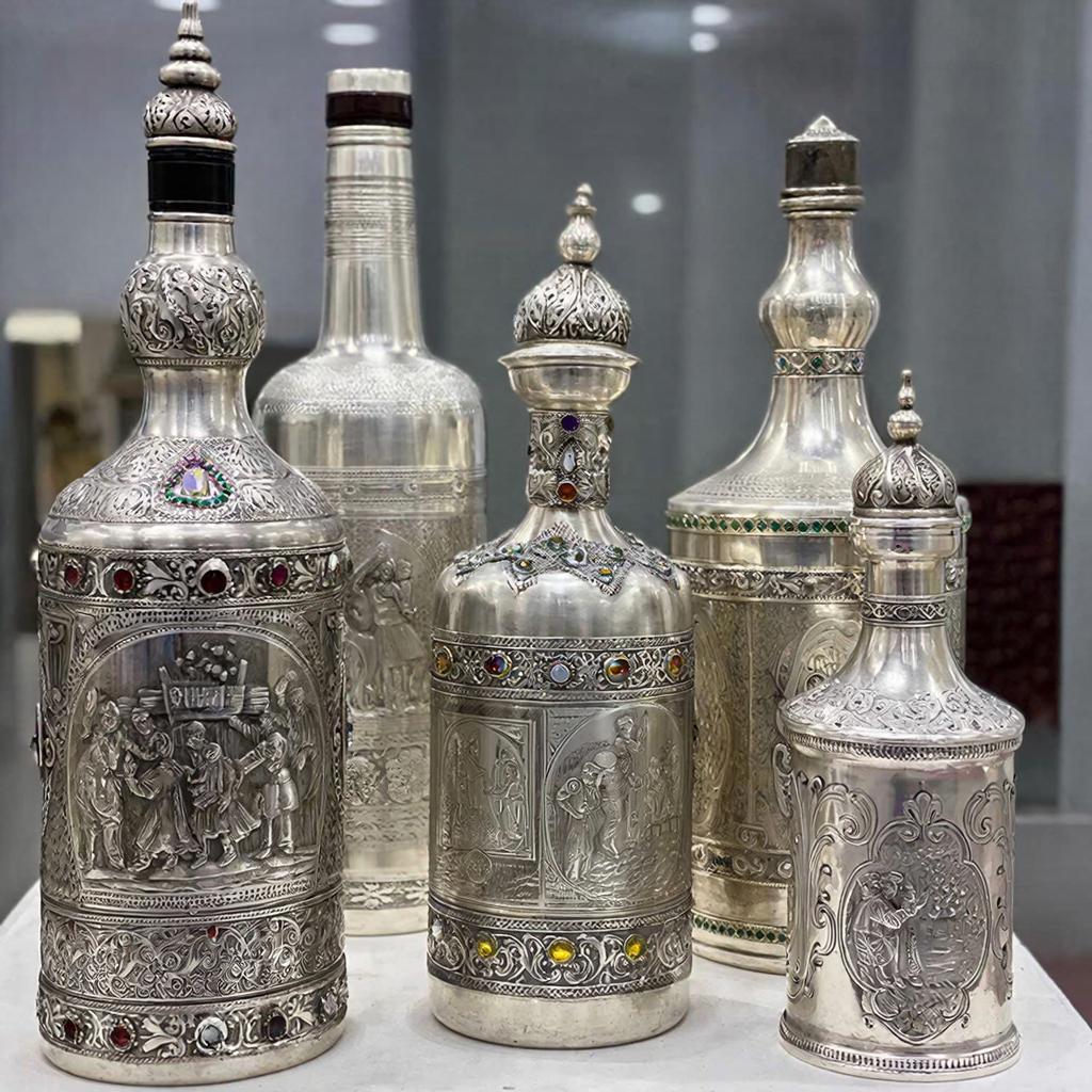 Трансформация из оружейников в ювелиров была органичной. Мы видим, как техники, отточенные на булатных мечах, легли в основу создания серебряных бутылок и графинов. Традиция изготовления серебряной посуды в Кубачи расцвела в XVIII-XIX веках. Именно тогда сформировался тот узнаваемый стиль, который сегодня мы называем классическим кубачинским. Использование серебра высокой пробы, сочетание глубокой гравировки с чернью и позолотой сделало эти изделия желанными трофеями для коллекционеров по всему миру, включая императорские дома Европы и Азии.